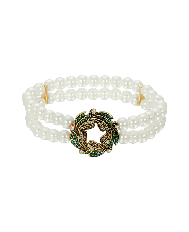 2028 Imitation Pearl Wreath Two Row Stretch Bracelet