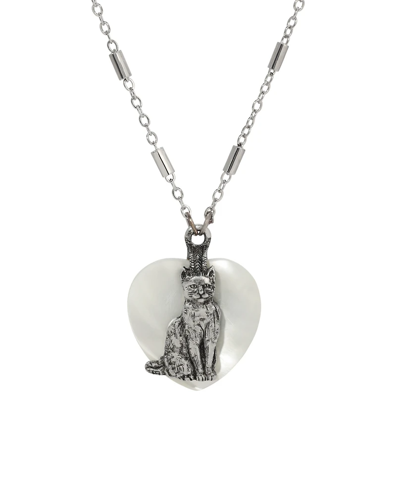 2028 Mop Heart Cat Pendant Necklace