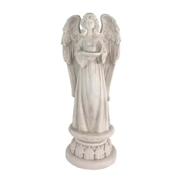 22.5'' Standing Angel with Birdbath Votive Candle Holder Outdoor Garden Statue