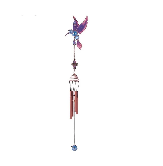 23" Long Purple Hummingbird Copper and Gem Wind Chime