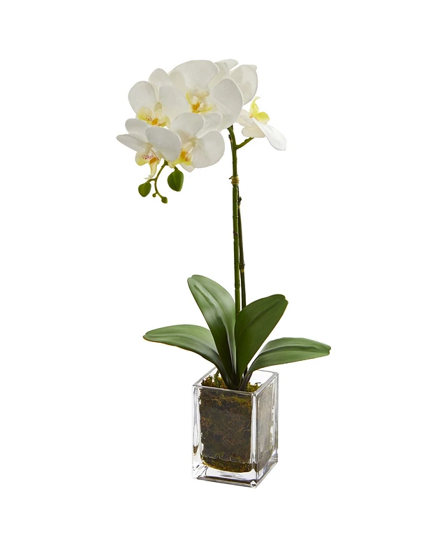 Nearly Natural Phalaenopsis w/Glass Vase Silk Flower Arrangement
