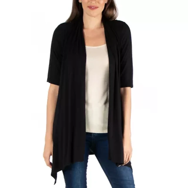 24/7 Comfort Apparel Elbow Length Sleeve Open Cardigan