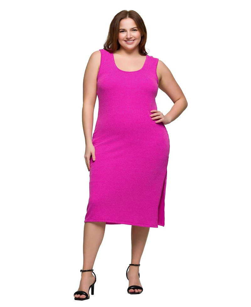 The Women's Fitted Sleeveless Side Slit Plus Size Midi Dress combines chic style with everyday versatility. Featuring a flattering sleeveless design, and a fitted silhouette that accentuates your curves, this midi length dress is perfect for warm weather. A side slit adds a touch of allure and ease of movement, making it ideal for both casual outings and dressier occasions. Available in multiple vibrant colors, this stylish and comfortable dress transitions effortlessly from day to evening, whether paired with sandals for a laid back vibe or heels for a more polished look.