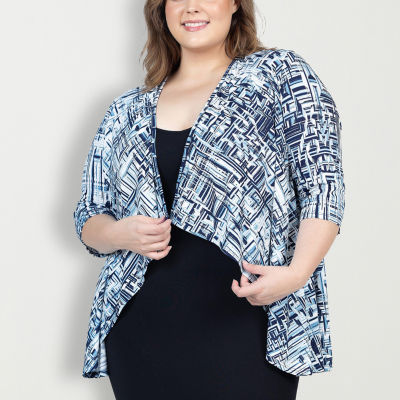 24seven Comfort Apparel Womens Elbow Sleeve Open Front Plus Geometric Cardigan