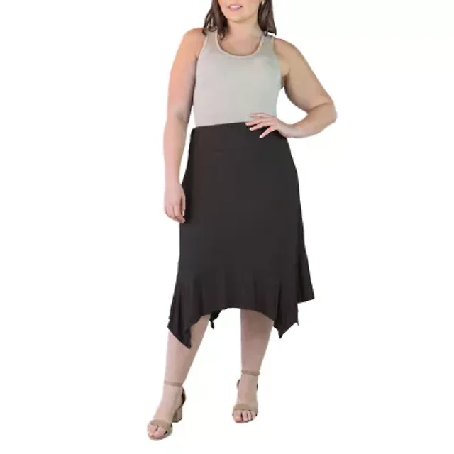 24seven Comfort Apparel Womens Plus Mid Rise Midi A-Line Skirt