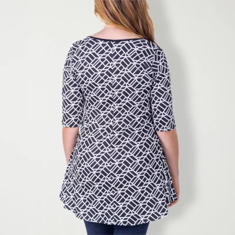 24seven Comfort Apparel Womens Scoop Neck Elbow Sleeve Tunic Top in San Juan, PR