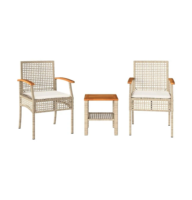 3 Pieces Outdoor Patio Wicker Furniture Set with Cushions and Acacia Wood Coffee Table