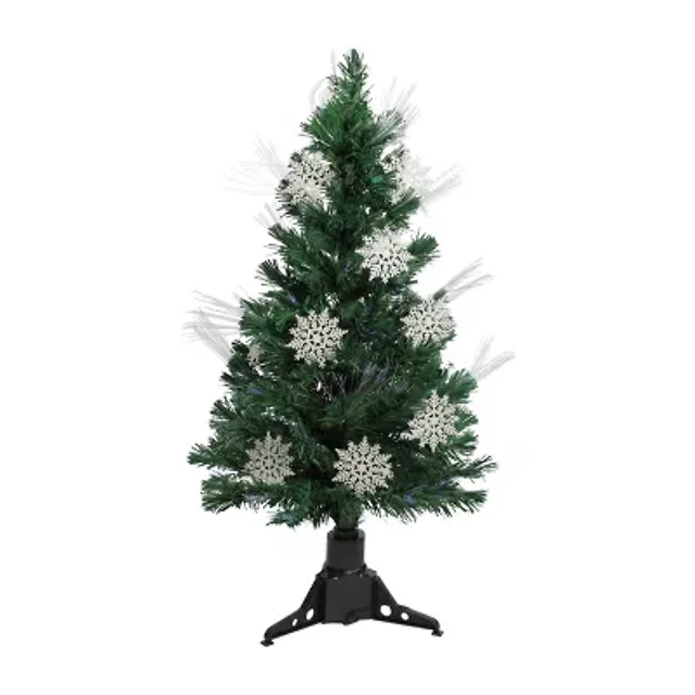 3' Pre-Lit Fiber Optic Artificial Christmas Tree with White Snowflakes - Multi-Color Lights