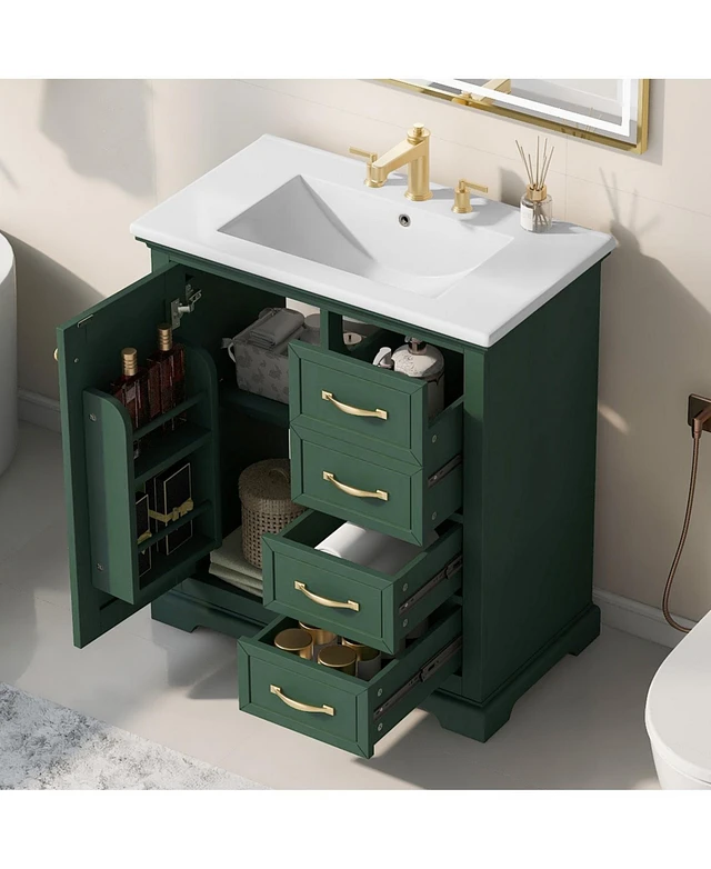 30" Bathroom Vanity with Sink, One Package, Green Bathroom Cabinet with Drawers, Solid Frame and Mdf Board