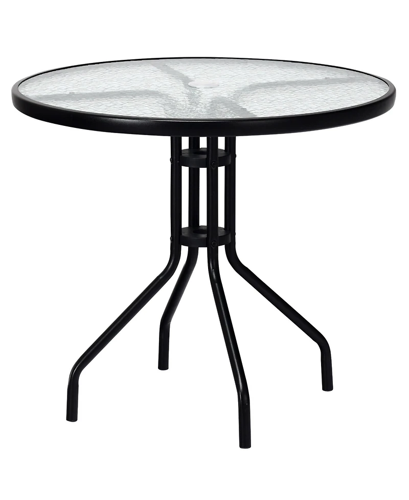 32 Inch Outdoor Patio Round Tempered Glass Top Table with Umbrella Hole in San Juan, PR