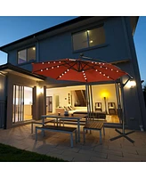 360° Rotation Solar Powered Led Patio Offset Umbrella without Weight Base