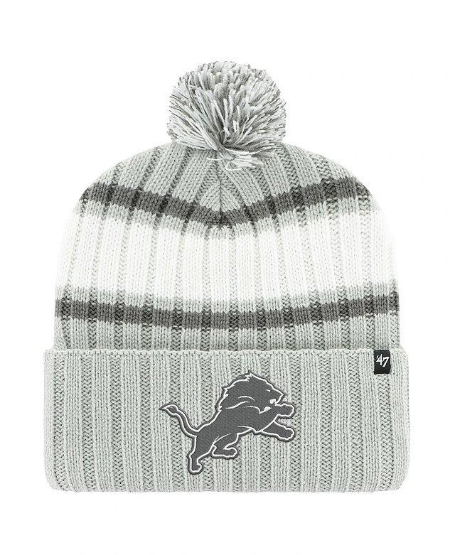 '47 Brand Men's Gray Detroit Lions Plateau Cuffed Knit Hat with Pom