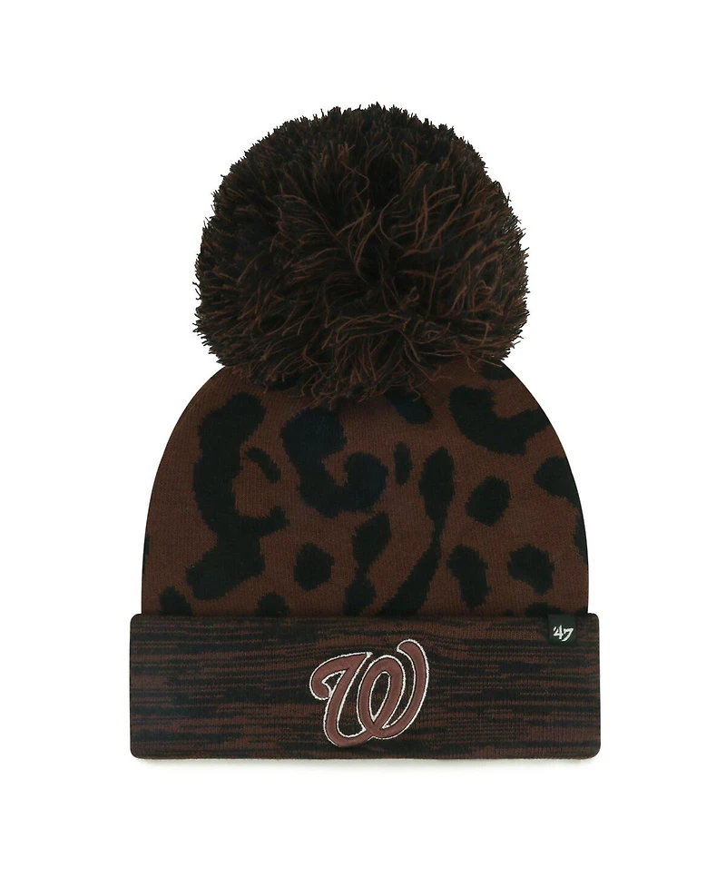 '47 Brand Women's Brown Washington Nationals Rosette Cuffed Knit Hat with Pom