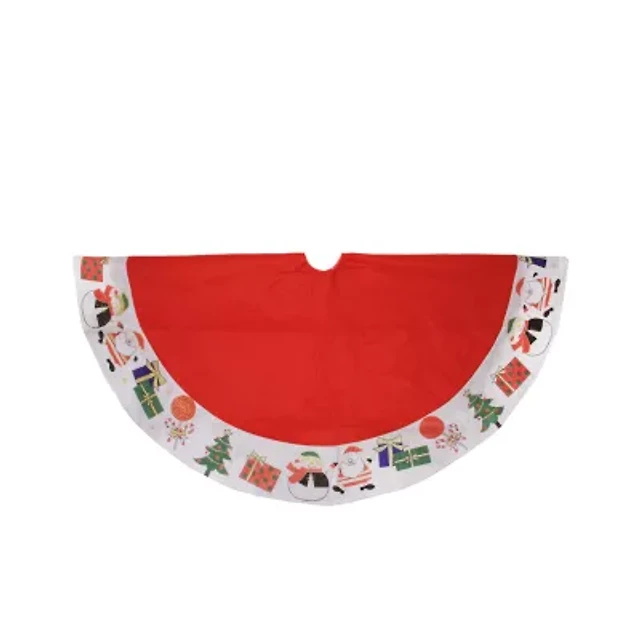 48'' Red with White Border Christmas Day Fun and Surprise Christmas Tree Skirt