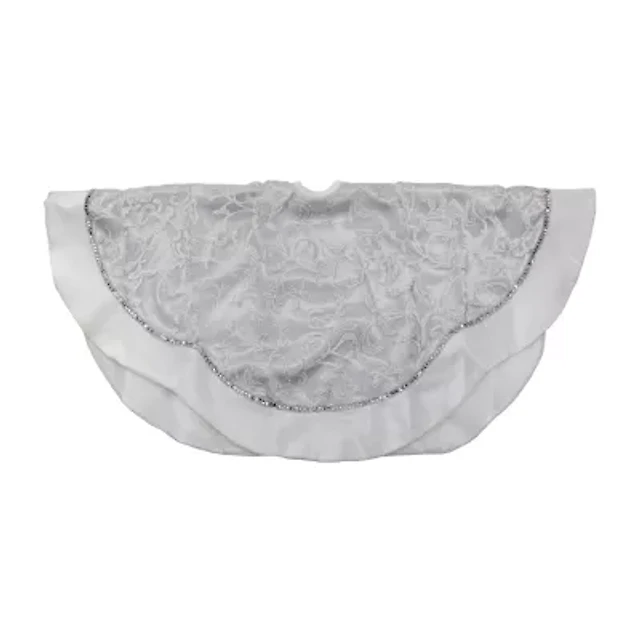 48'' Silver and White Floral Trimmed Christmas Tree Skirt