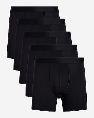 This 5-pack of boxer briefs is complete with five solid black styles that are crafted from moisture wicking fabric to keep you cool and comfortable. These boxer briefs are infused with stretch for all-day comfort and feature mid-thigh coverage, an elastic logo waistband, and a faux fly.