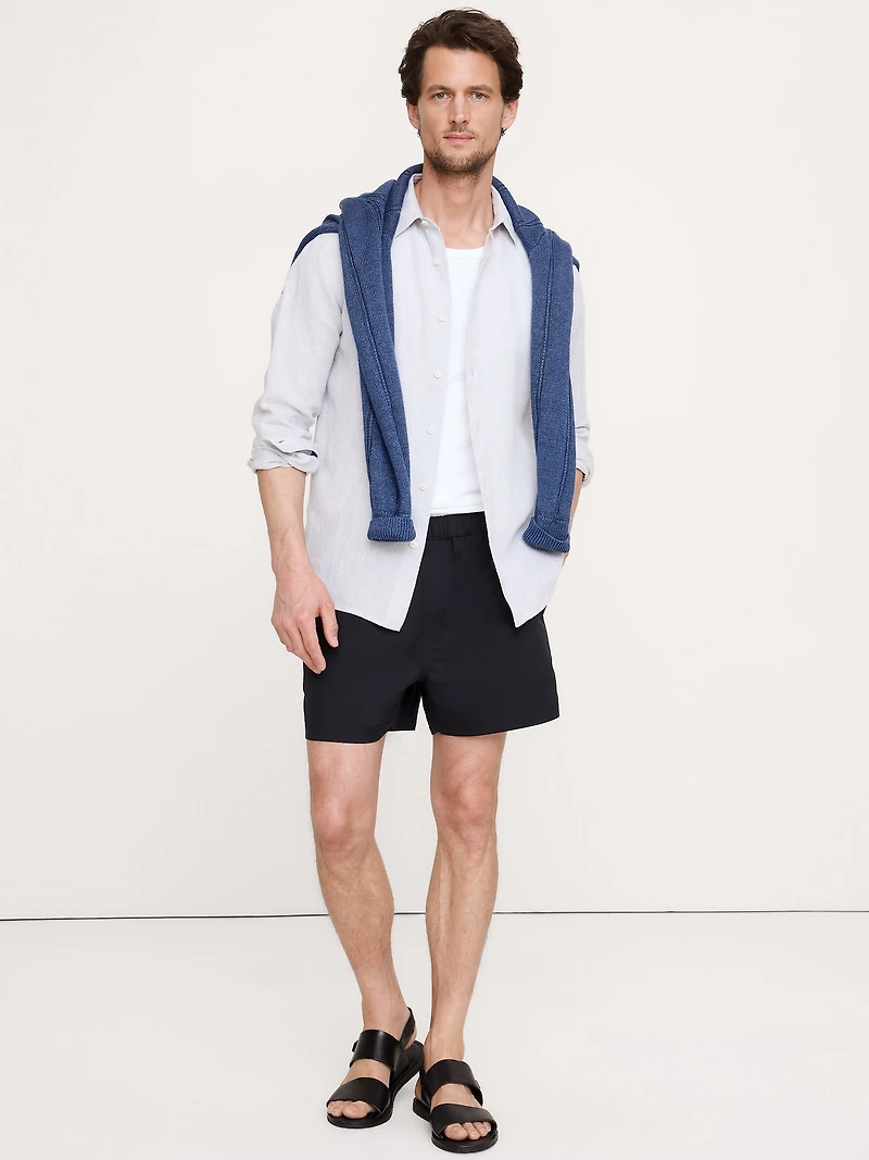 If shorts could be overachievers—this lightweight short does the most thanks to a Solotex® twill fabric that balances performance, comfort, and a put-together appearance. Wrinkle-Resistant, Water-Repellant, Breathable, 4-Way Stretch Relaxed fit: Mid rise. Relaxed through hip and thigh with a straight leg. Sustainability: Made with 59% recycled polyester. Elastic waistband with drawstring closure. Front and back pockets. Concealed zip pocket at wearer's right (ideal for cell phones and keys). Unlined Relaxed fit: Mid rise. Relaxed through hip and thigh with a straight leg. Inseam: Regular 5"