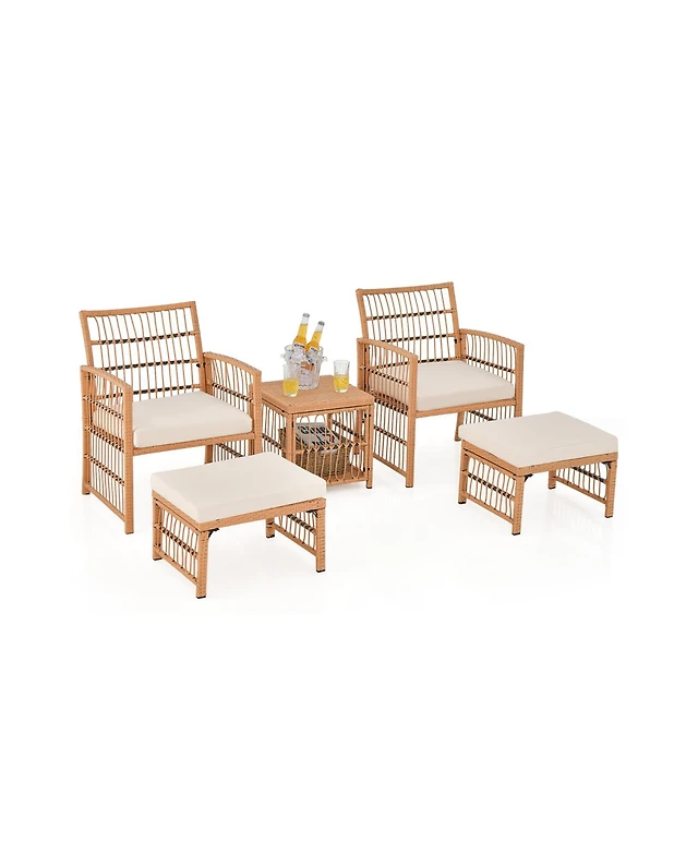 Gymax 5 Piece Patio Rattan Conversation Set Outdoor Wicker Sofa Set with 2 Ottomans