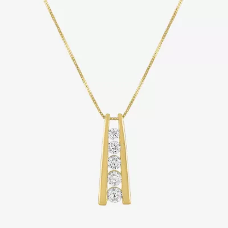 This women's five stone ladder style pendant necklace is an affordable yet glamorous piece you can wear for evening and everyday looks. Set in karat gold, it includes a drop pendant sculpture accented with a vertical row of round-cut Lab-Grown Diamonds