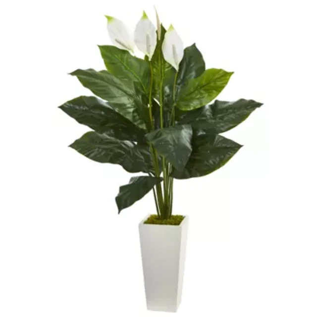 51” Spathiphyllum Artificial Plant in White Tower Planter