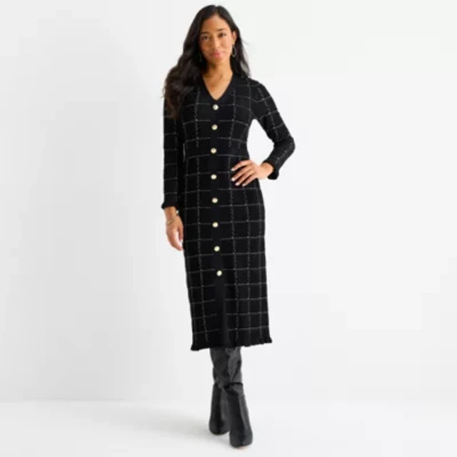 Liz Claiborne Womens Long Sleeve Midi Sweater Dress