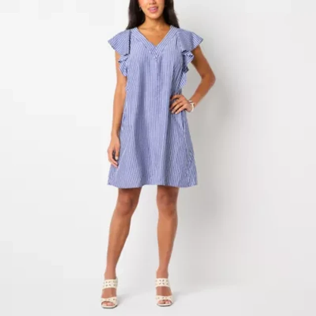 52seven Womens Short Sleeve Striped Shift Dress