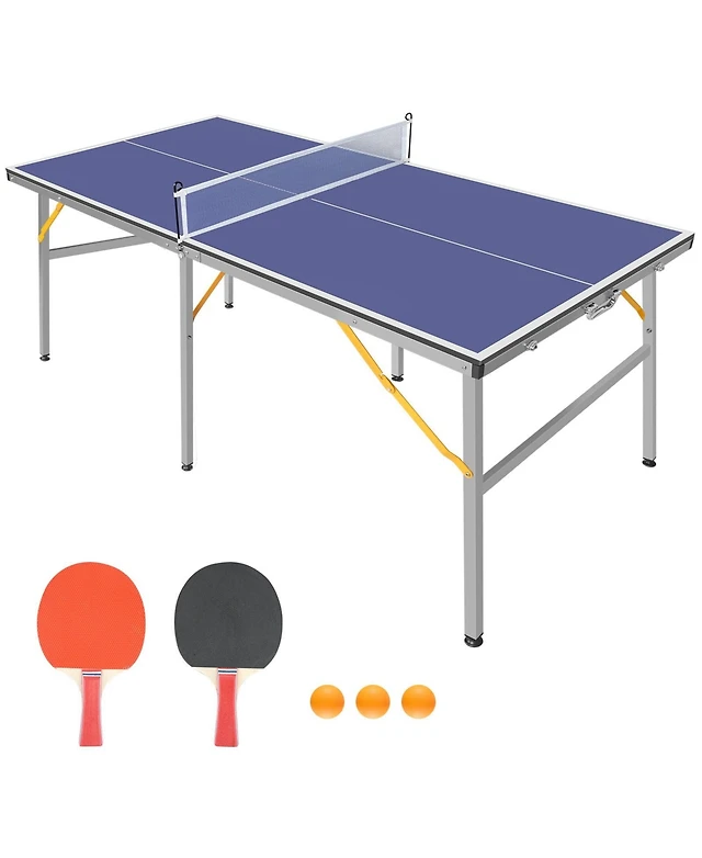 6 ft. Mid-Size Foldable Table Tennis Table Ping Pong Table Set with Net, 2 Paddles and 3 Balls for Indoor Outdoor