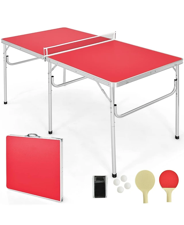 6 ft. Mid-Size Foldable Table Tennis Table Ping Pong Table Set with Net, 2 Paddles and 3 Balls for Indoor Outdoor