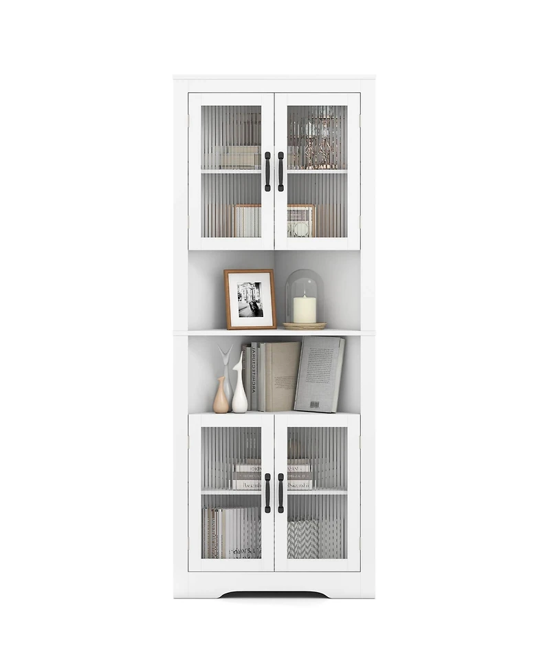 67" Tall Corner Hutch with 4 Fluted Glass Doors 3-Level Adjustable Shelves