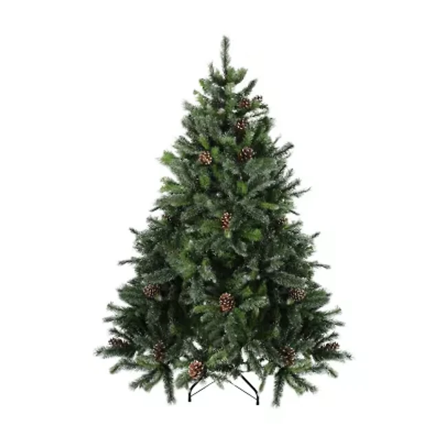 7' Full Snowy Delta Pine with Cones Artificial Christmas Tree Unlit