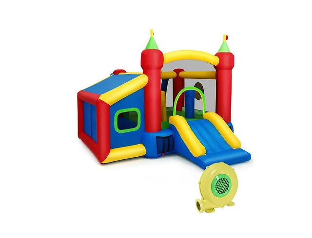 7-in-1 Kids Inflatable Bounce House with Long Slide and 735W Blower