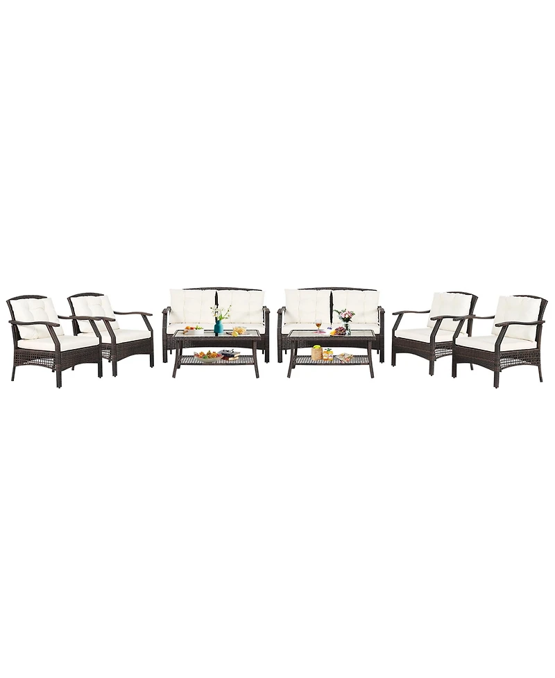 8 Pcs Outdoor Rattan Conversation Set Patio Rattan Sofa Set W/ Protective Cover