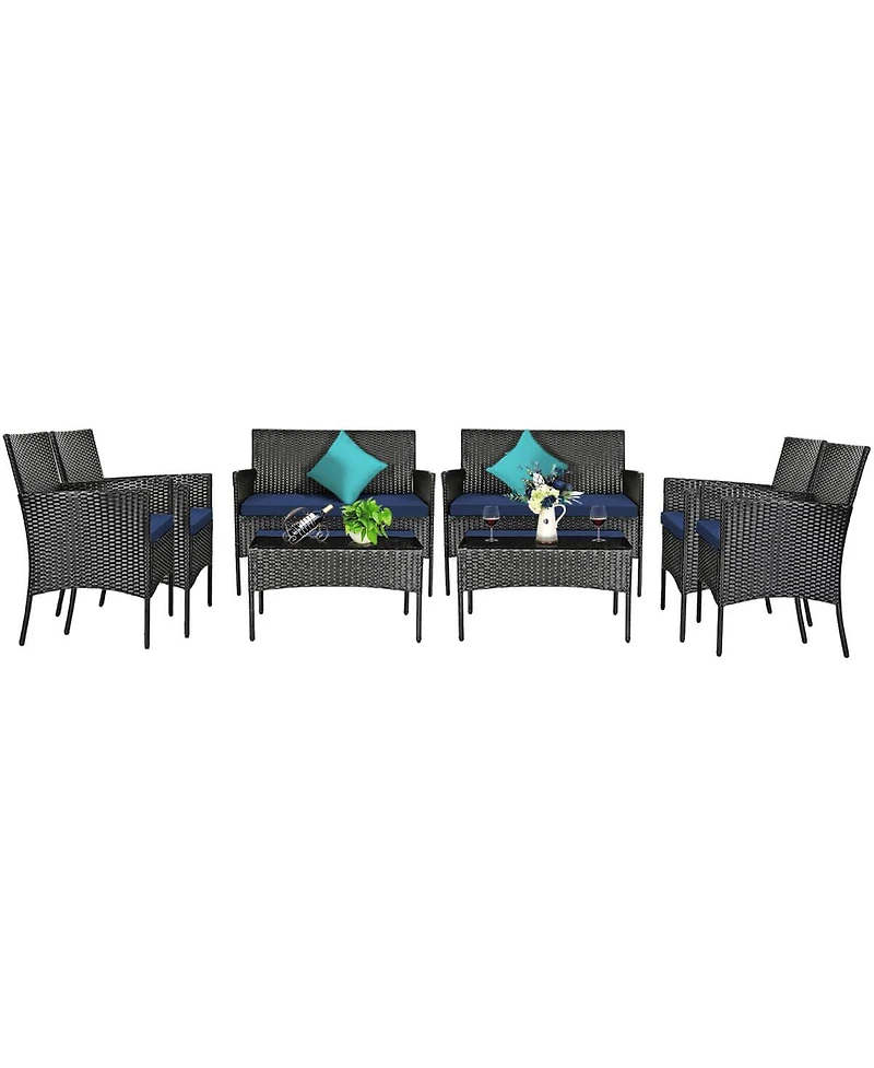 8 Pcs Patio Rattan Furniture Set Cushioned Sofa Coffee Table Backyard Porch