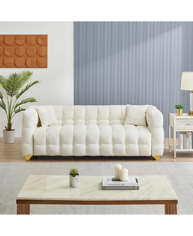 80 inches long, 21.7 inches deep, American body structure, technology fabric sofa, 3 seats waterproof and stain-proof, Beige anti-cat paw sofa