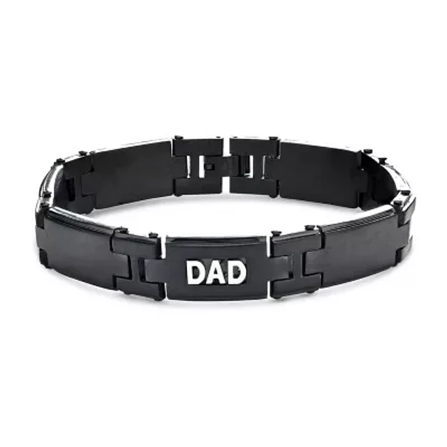 9 Inch "Dad" Solid Black Link Bracelet