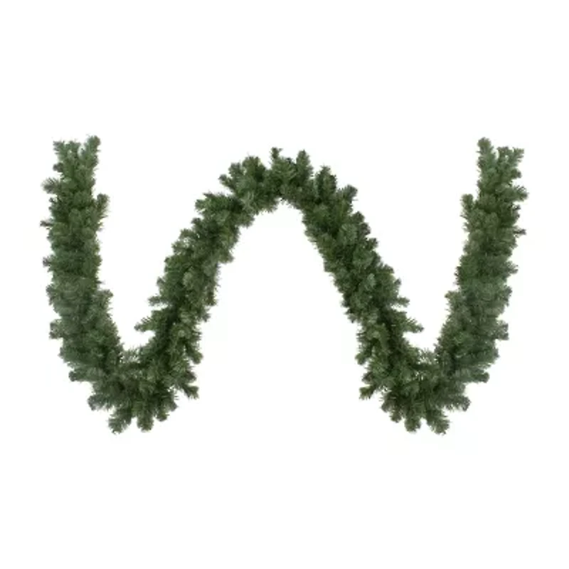 Bring a touch of nature into your home while staying traditional. This luscious green garland is perfect for decorating your home just in time for Christmas. Add a natural feel to your stairs and doorways or decorate it with bows and ribbons to add a pop of color. Product Features: Unlit. 240 tips. 2" wide tips. Natural deep green color. Bendable wire center allows for you to shape the garland any way you desire. For indoor or outdoor use. Green metal hooks on each end for easy hanging. Flame retardant. Dimensions: 9' long x 10" wide. Material(s): PVC/metal. Note: Branches are compressed for shipment and need to be fluffed out upon arrival to look like the photo.