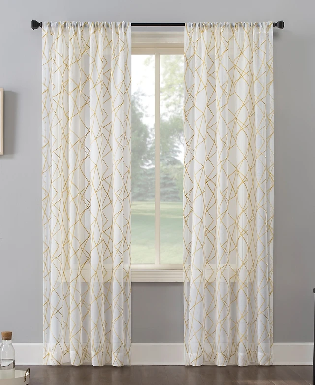 Abstract Geometric Embroidery Semi-Sheer Rod Pocket Curtain Panel