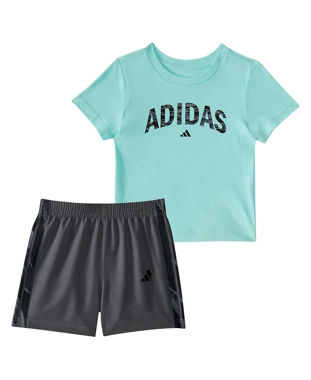 adidas Baby Boys 2-Piece Short Sleeve T-Shirt and Camo 3-Stripe Woven Shorts Set