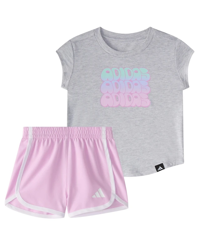 adidas Baby Girls 2-Piece Cap Sleeve Heather T-Shirt and Woven Shorts Set