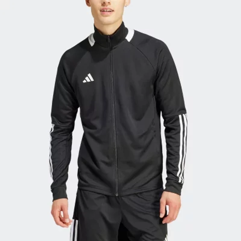 This adidas Sereno men's lightweight track jacket is an essential sporty style to have in the mix. Made from a soft recycled knit with moisture-wicking properties to keep you dry and fresh on the go, this stylish two-tone zip jacket features the brand's logo and signature stripes, a high mock neck and front slip pockets. Wear it with track pants.