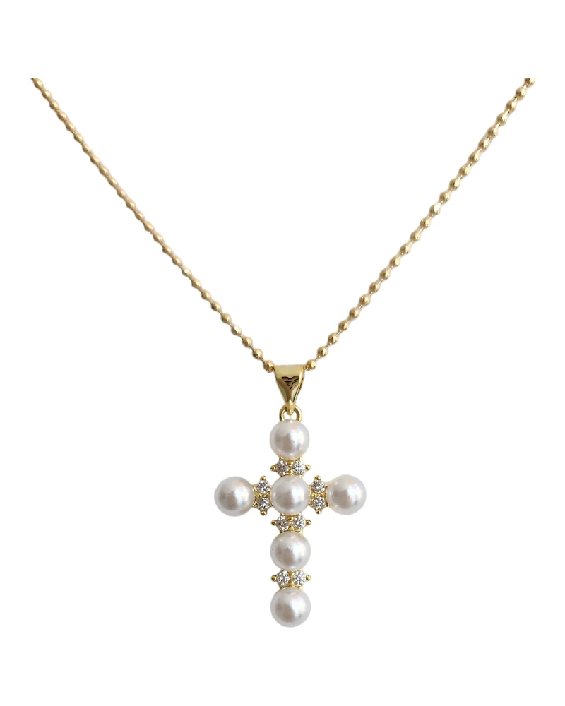 Experience the timeless elegance of ADINA, the 18" pearl cross necklace. Made with 18k goldfilled material, this necklace exudes luxury and class. Add a touch of sophistication to any outfit with this stunning piece. Elevate your style with ADINA now.