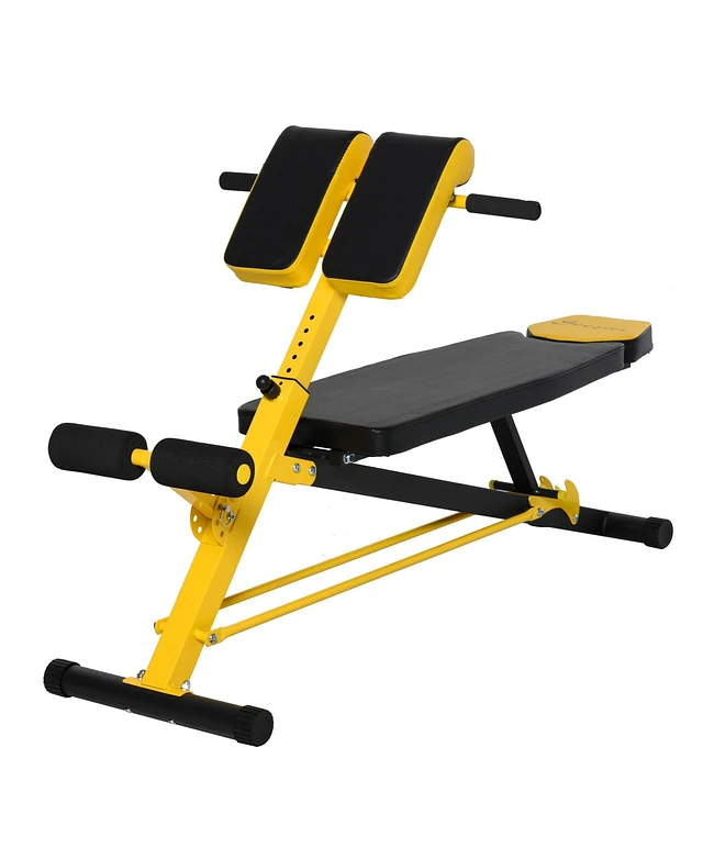 Adjustable Hyper Extension Dumbbell Weight Bench, Foam Leg Holders, Exercise Abs, Arms, Core, Strength Workout Station for Home Gym, Yellow