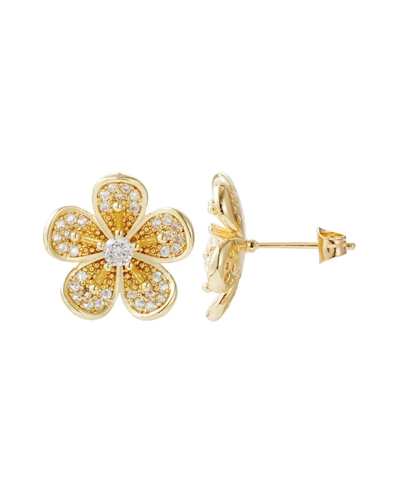 Adornia Gold Cz Flower Stud Earrings