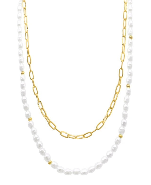 Adornia Gold-Tone Imitation Pearl & Paperclip Two-Row Layered Necklace, 17" + 3" extender
