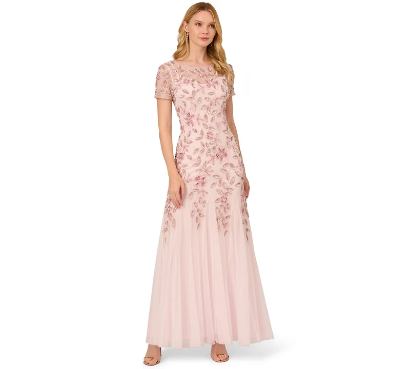 Adrianna Papell Floral-Beaded Gown