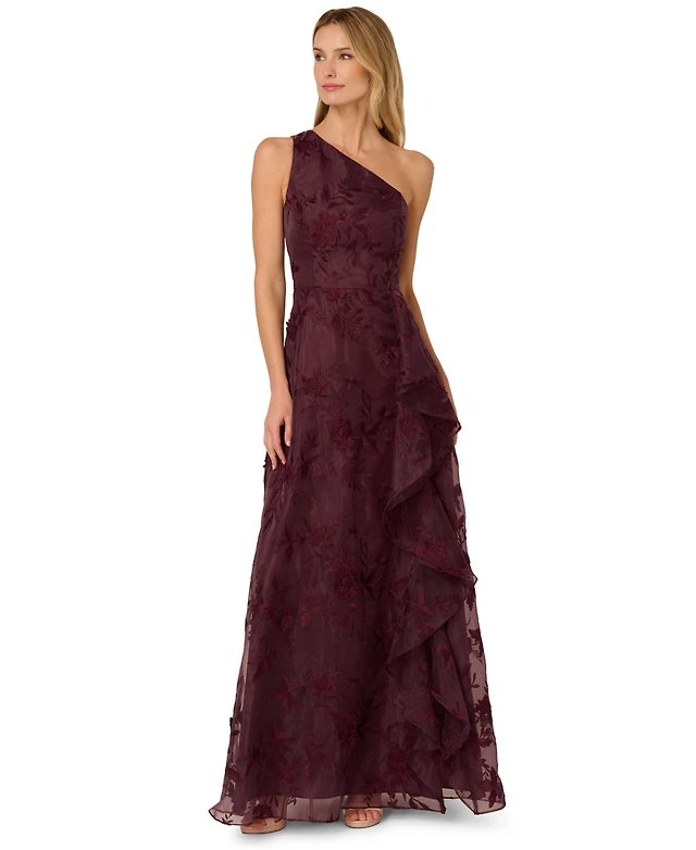 Adrianna Papell Women's Embroidered Ruffle Gown
