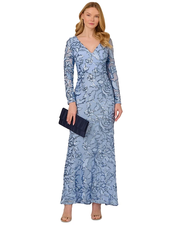 Adrianna Papell Women's Sequin Embellished Long-Sleeve Gown