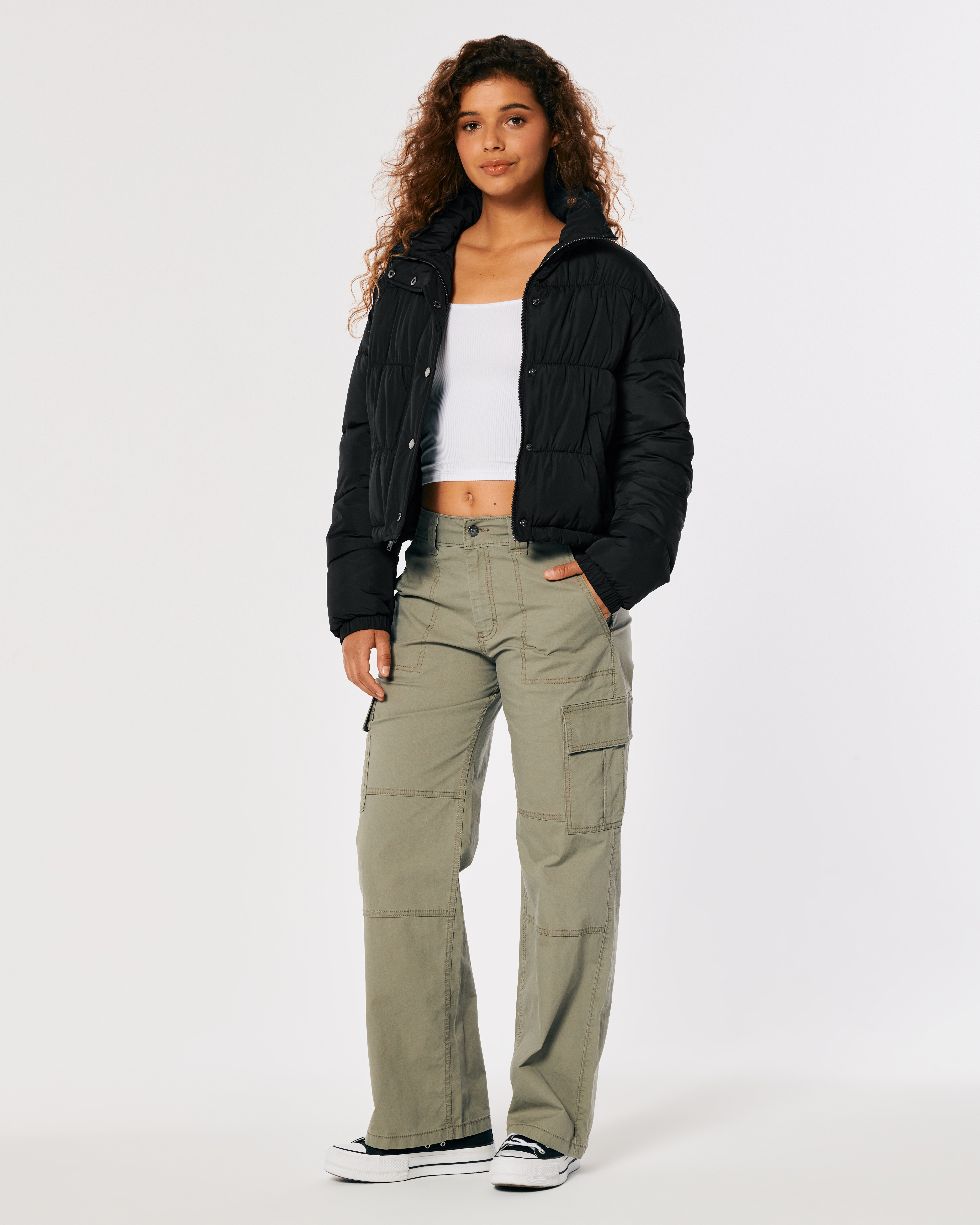 Almost Famous Mock Neck Zip Front Puffer Jacket