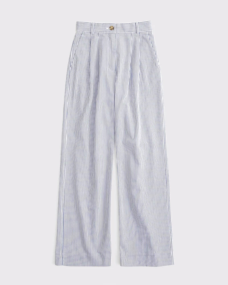 Our signature A&F Sloane Tailored Pant in a washed twill fabric, that's perfect for dressing up or down. The A&F Sloane Tailored Pant is an ultra high rise tailored wide leg pant with figure-flattering pleating details, a functional fly and pockets and a partially elasticated waistband for ultimate adjustability. This fit is relaxed through the hips, and eases into a wide, full-length leg shape. The intended length hits the bottom of a flat shoe. Please reference our size chart to determine your perfect size and inseam.