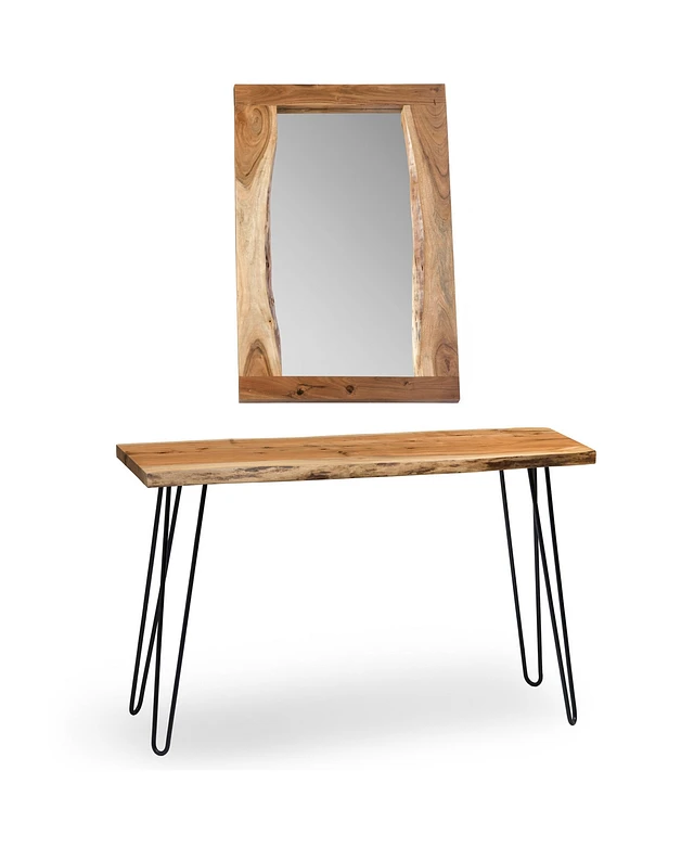 Alaterre Furniture Hairpin Natural Live Edge Media Console and Mirror Set